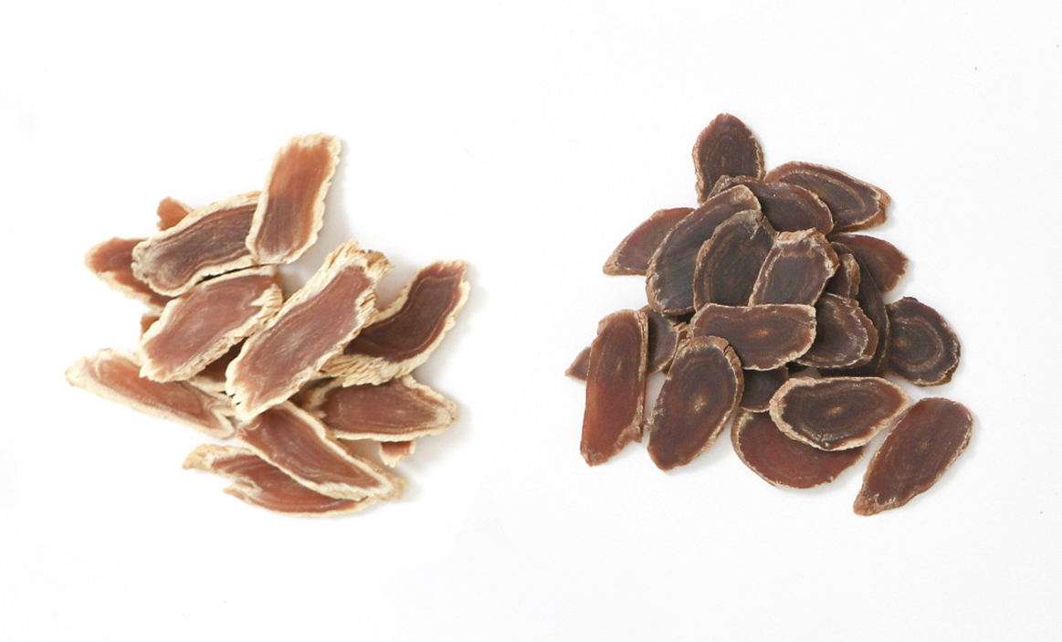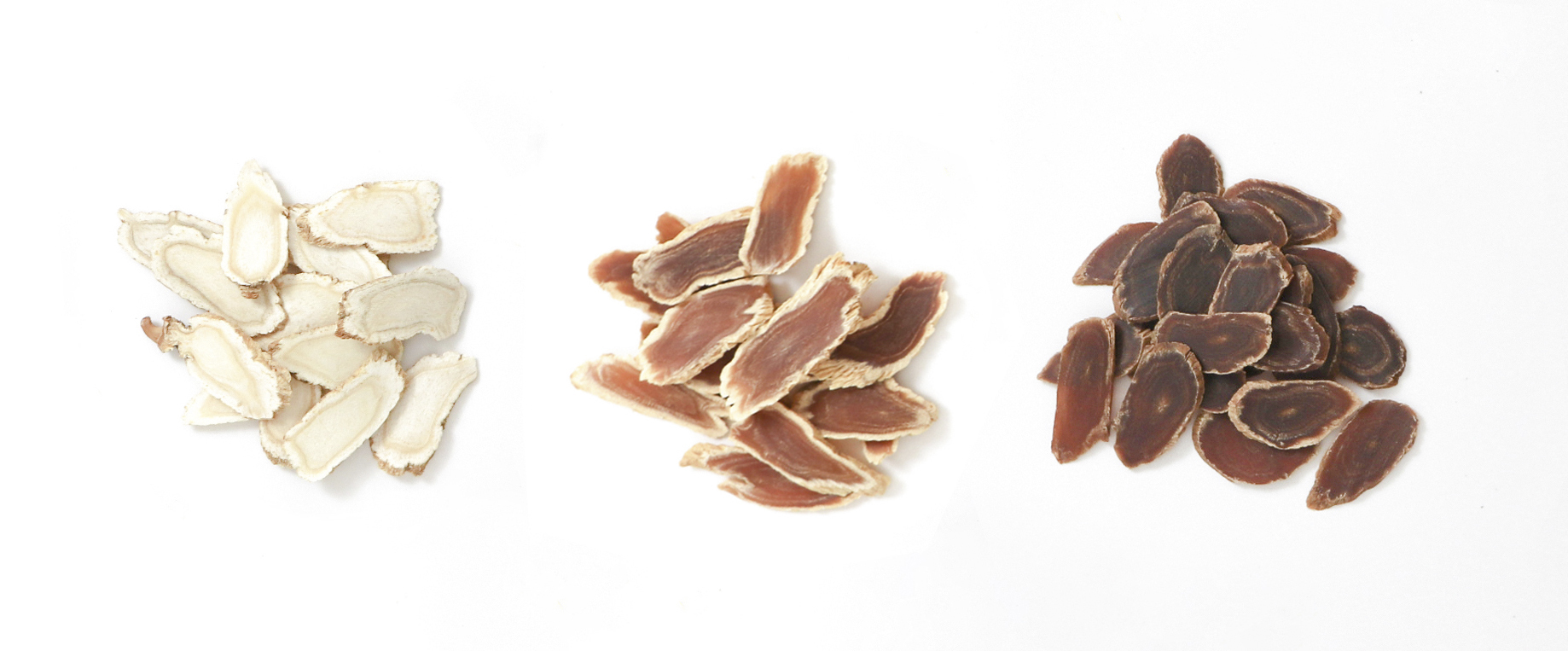長時間高溫蒸製 → 內肉顏色深褐色、性質較強、嚼食苦味較明顯