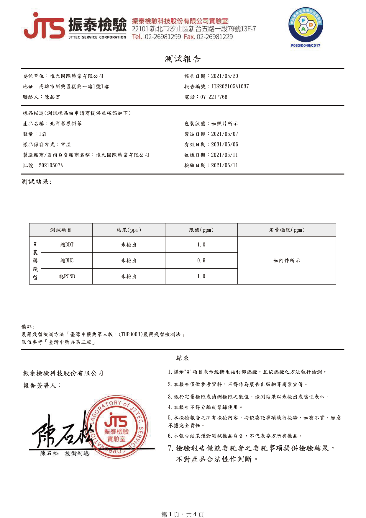 *本頁面為惟元進口品項之檢驗報告* *點擊圖片即可下載* *不定期更新*