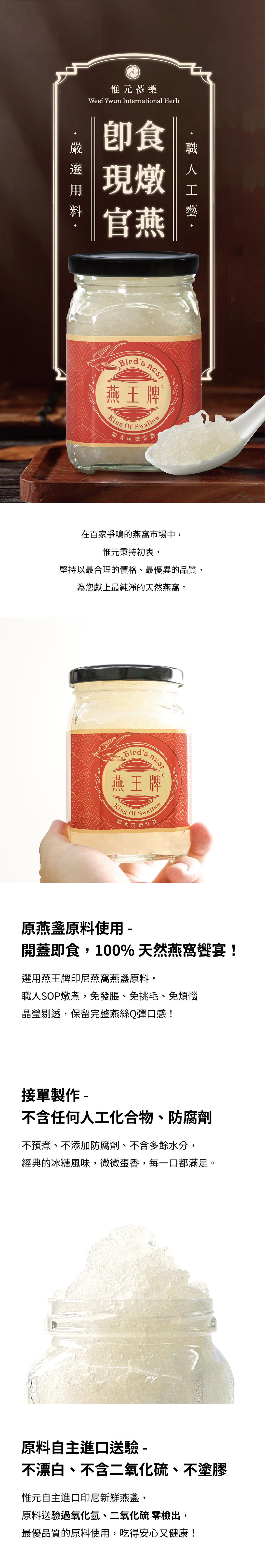 • 由燕王牌燕盞為原料,為您省去繁瑣步驟