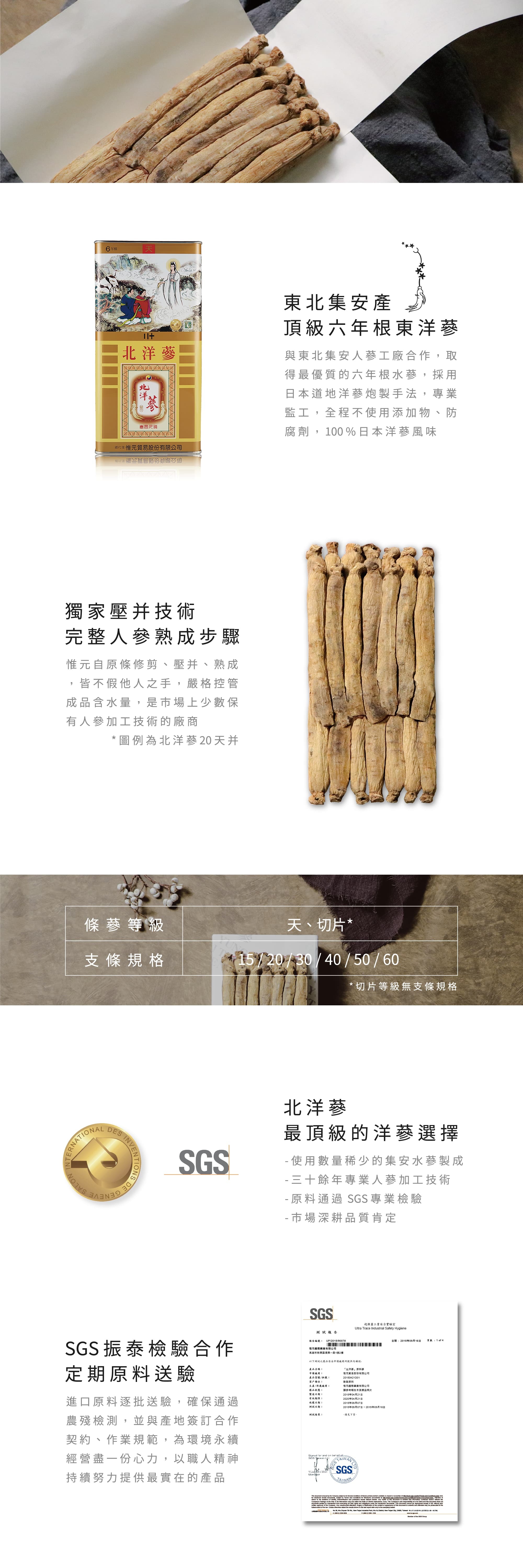• 洋蔘氣味濃郁,蔘片色清硬實
