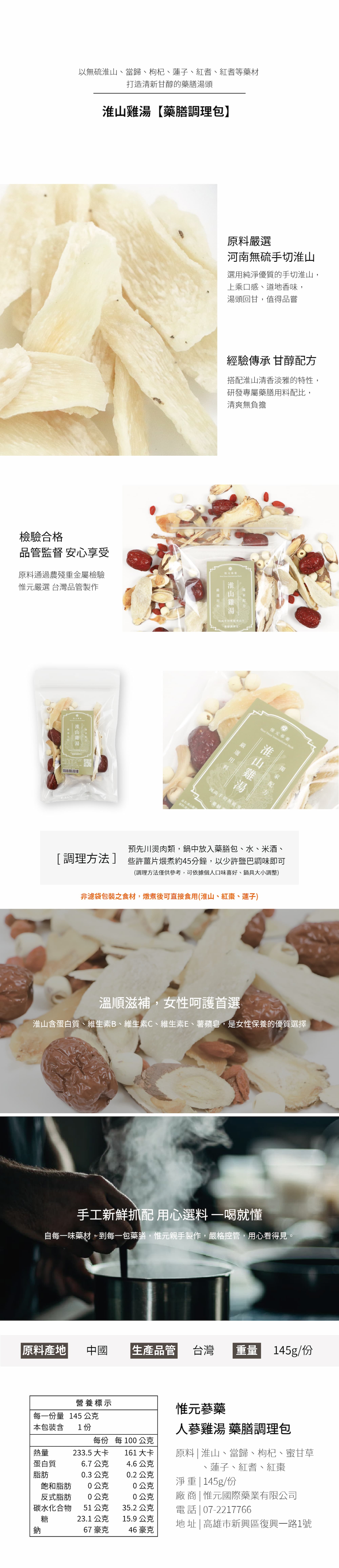 包裝規格:145公克/包 (藥材已用濾袋封裝)