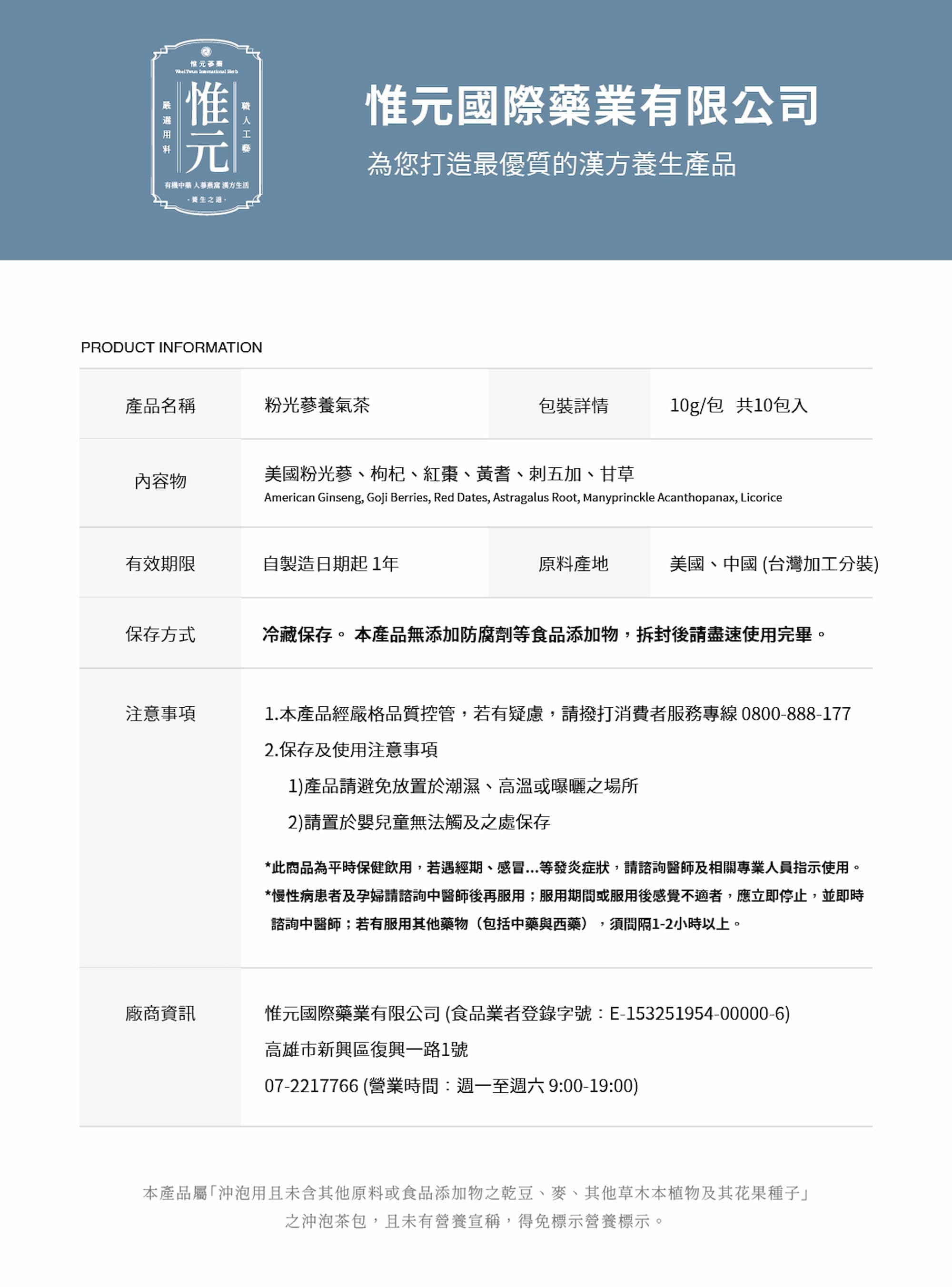 內容物:西洋蔘、枸杞、紅棗片、紅耆、刺五加