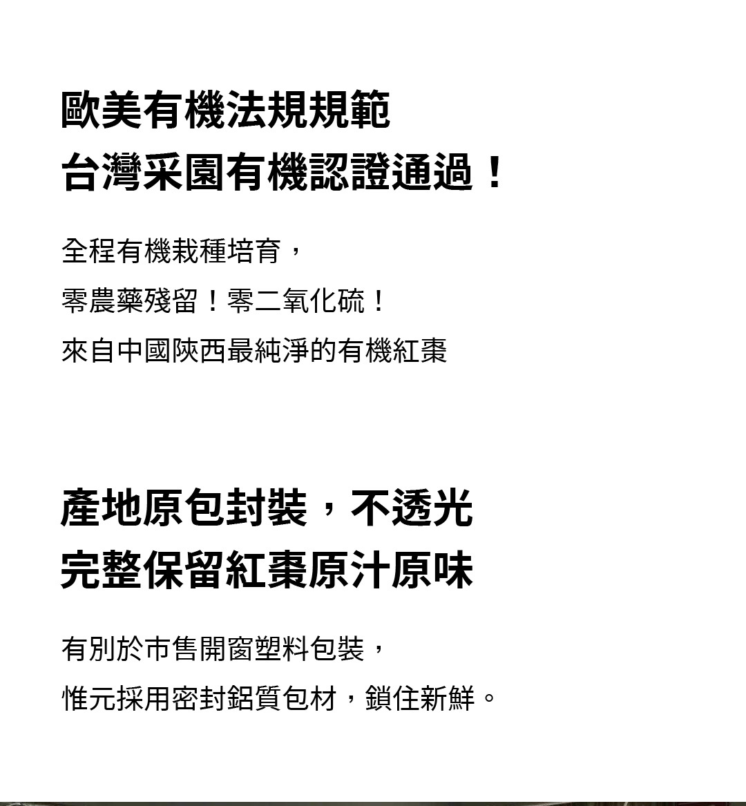 • 不使用二氧化硫薰蒸