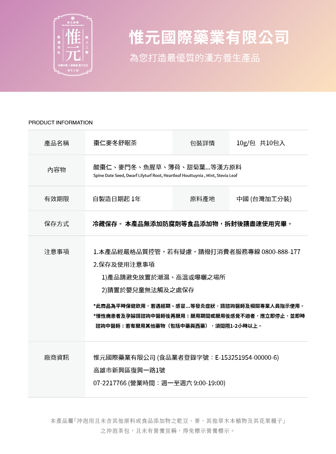 • 搭配麥冬,最舒適放送的睡前茶飲